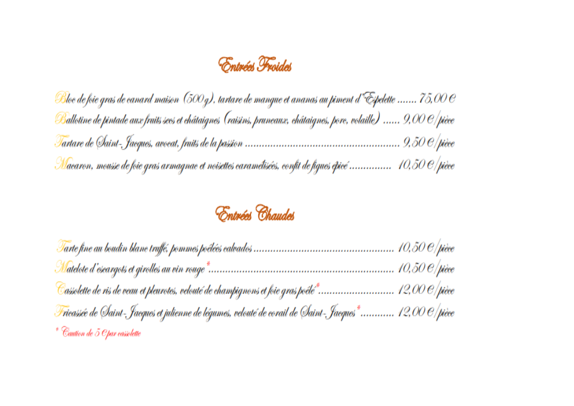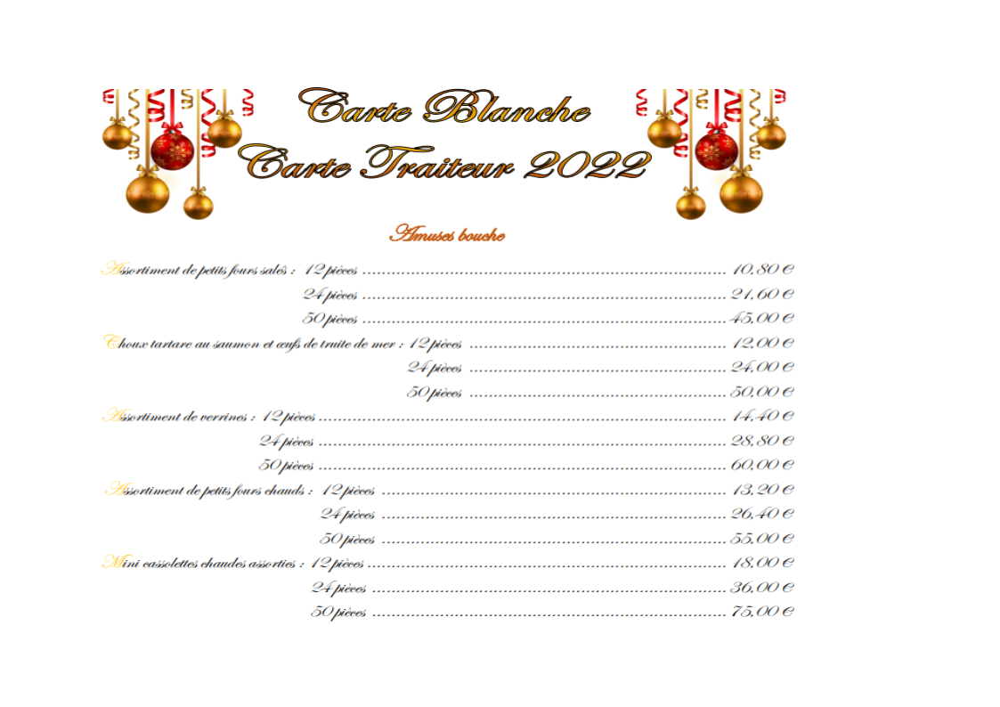 Carte blanche menu des fêtes