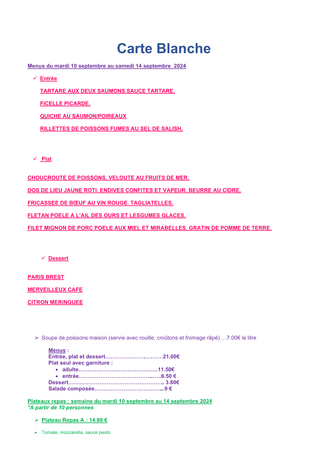 Aucun article défini dans la catégorie "Alimentation / Menu carte blanche".