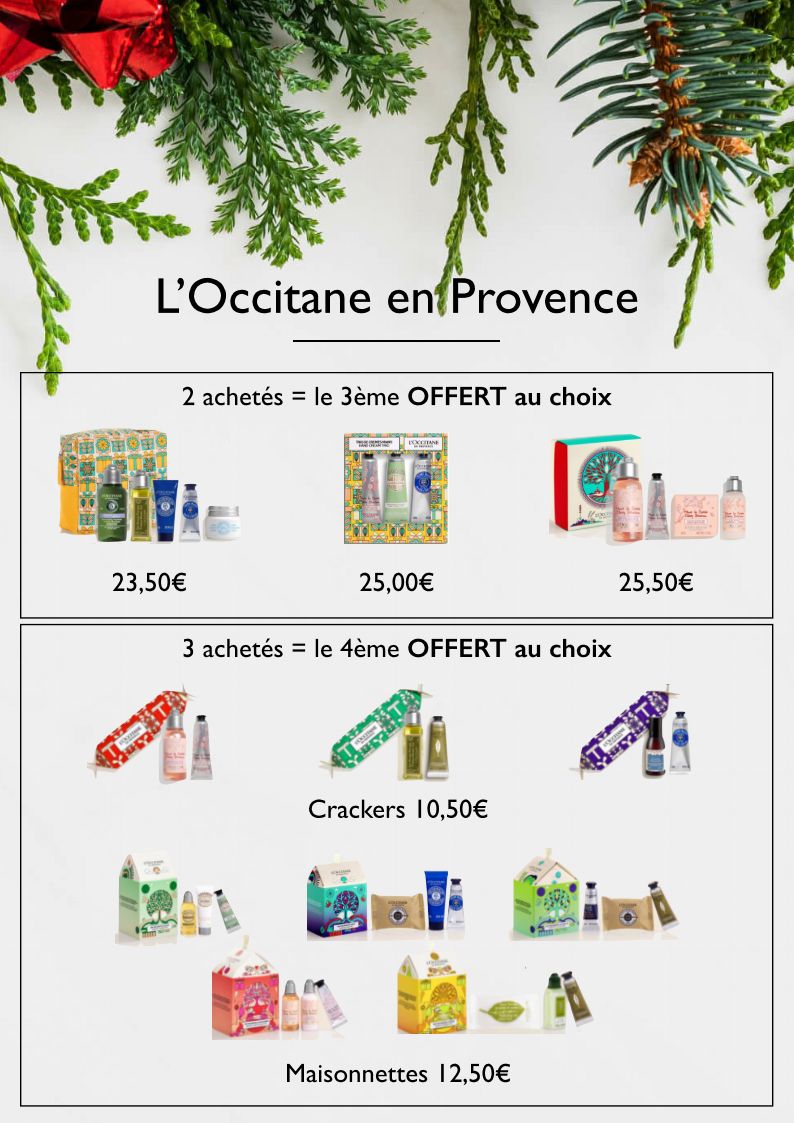L’Occitane vous propose des coffrets remisés spécialement pour les fêtes de fin d’année (voir en PJ)